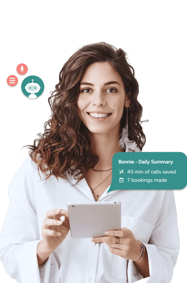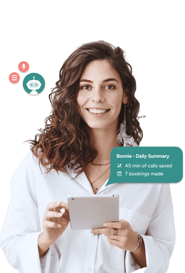 With Bonnie’s AI receptionist, your calls are always in good hands. Deploy Bonnie to provide your customers with 24/7 support, while you focus on delivering on-site services. Let Bonnie handle call answering, smart routing, appointment bookings, and frequently asked questions.