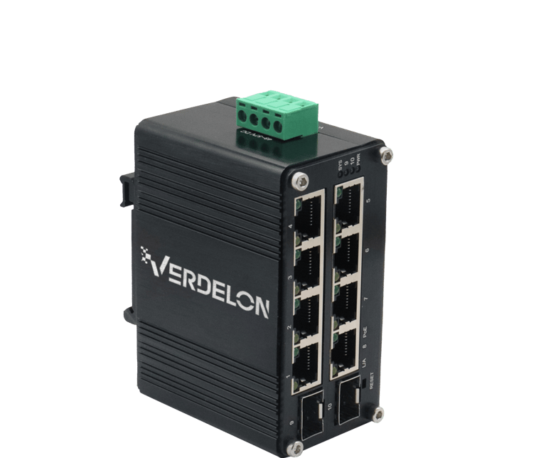 Explore Verdelon’s extensive range of industrial PoE and Ethernet switches, available in both managed and unmanaged models. Featuring advanced web-based management and support for multiple PoE standards, including high-power IEEE 802.3bt PoE++ delivering up to 95W per port. Verdelon switches are built for demanding industrial environments.